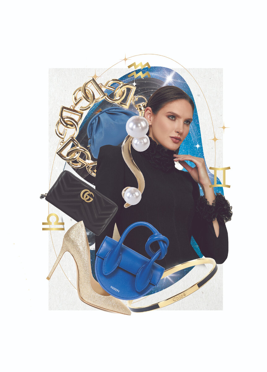 Согласно китайской философии, весь мир стоит на взаимосвязи пяти стихий — это ветер, жара, влажность, сухость и холод; и пяти элементов — это дерево, огонь, металл, земля и вода. Воздуха в этом списке нет, но лишь потому, что он считается высшей силой, носителем «Великого начала», которому обязано все живое на Земле. Воздушные знаки — Близнецы, Весы и Водолей — независимы, свободны и всегда в движении. Их стихия — коммуникация, поездки и новые идеи. Они быстро утомляются однообразием, поэтому модные новинки необходимы им буквально как воздух. Холодный голубой, кобальтовый синий, насыщенный индиго — все оттенки ясного зимнего неба в приоритете: они отлично смотрятся на аксессуарах, поэтому смело радуйте прекрасных представительниц воздушных знаков зодиака яркими сумками. Так же, как звезды, Солнце и Луна украшают небесную синь, женскую красоту подчеркнут вещи с сиянием золота и серебра: ювелирные украшения, бижутерия и изящные туфли, усыпанные стразами. Воздух независим: он проникает ве