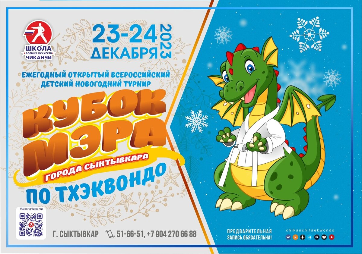 Соревнования пройдут 23-24 декабря 2023 г. Приглашаем спортсменов от 3-х лет и старше. Предварительная запись обязательна, регистрация продлится до 21 декабря. Подать заявку: