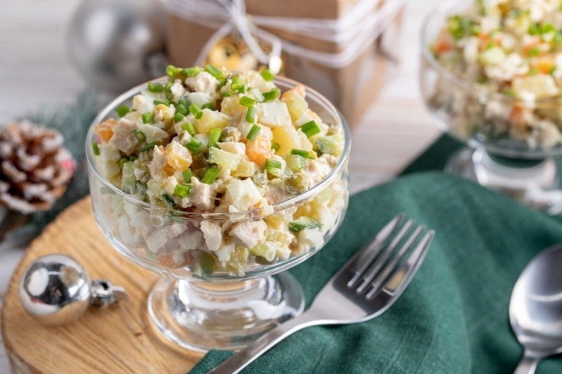 Каждый год 31 декабря мы с удовольствием готовим любимые угощения — оливье, сельдь под шубой, заливное. Но знаете ли вы, кто придумал эти блюда и каким был их путь на наш праздничный стол? Изучаем вопрос, а заодно заряжаемся новогодним настроением! Салат оливье Оливье — один из главных символов Нового года. Удивительно, но его история начинается еще в XIX веке. Правда, первоначальный вариант был куда более изысканным, чем тот, к которому мы привыкли. Люсьен Оливье, повар московского ресторана «Эрмитаж», хотел удивить избалованную знать необычным блюдом. В состав своего шедевра он включил рябчиков, куропаток, хвосты омаров, телячий язык, а заправил его провансальским соусом (майонезом). Подавали салат с вареным картофелем, маринованными огурцами-корнишонами и перепелиными яйцами. Оригинальный рецепт был тайной, которую Оливье унес с собой в могилу. Хотя впоследствии салат упоминался во многих кулинарных книгах, состав его был уже другим. Со временем набор ингредиентов продолжал меняться