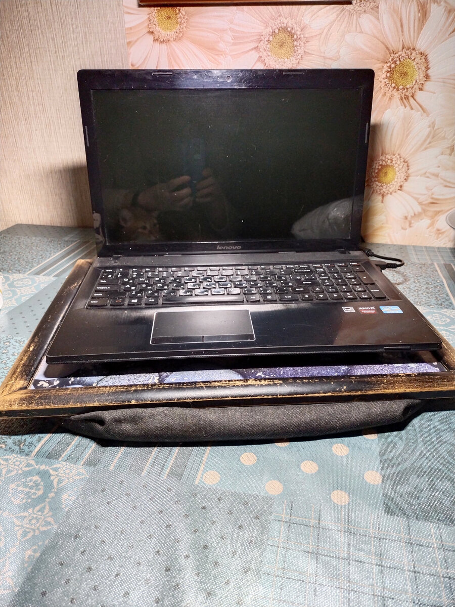 Ноутбук у меня появился поздно, только в 2006 году. До того он мне был незачем, и так весь день на работе перед монитором, ещё и дома в него смотреть - нет уж. А в 2006-м я купила квартиру и, таки ладно, решила сделать её полной чашей. Тогда же, в 2006-м, я приобрела и поднос на подушке - специально для ноута, чтобы он не грелся на коленях. Теперь компьютер уже новый - а поднос всё тот же. И осенило меня недавно, что никак не получается ставить этот поднос ровно на кривой поверхности... А почему?! Да потому что подушка опустела!!! Сначала я решила купить новый. Но цена в интернет-магазинах меня ошарашила: от 3271 рубля! (В скобках. Сейчас искала иллюстрации, чтобы доказать свои слова, и нашла нужное по вообще смешным ценам - от 604 рублей. Правда, и товара нет в наличии, ха-ха.) Но всё равно у меня вышло ещё выгоднее. После того, как цены за подносы меня покусали, я вдруг вспомнила, что вообще-то сама с руками, и заказала мешок наполнителя из пенополистирола за 378 рублей. Вот, смотр