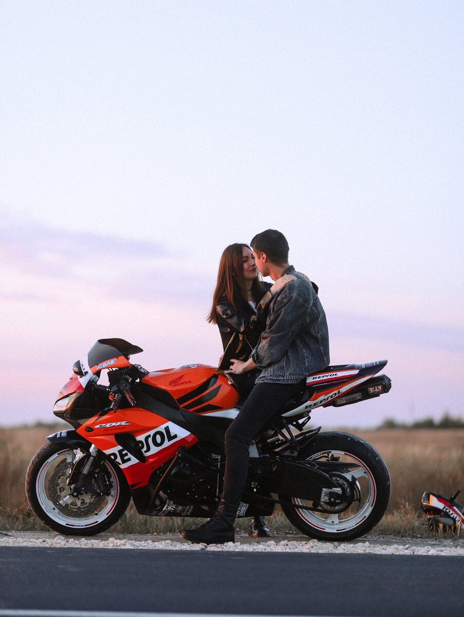 Романтические пары часто мечтают о совместной фотосессии, чтобы запечатлеть свои отношения. Некоторые выбирают нестандартные концепции и локации, воплощая самые смелые идеи. Однажды в фотостудию обратилась влюбленная пара байкеров – Аня и Сергей. Они познакомились в мотоклубе и разделяли общее хобби, а потом влюбились друг в друга. Для фотосессии Аня и Сергей приехали на своем любимом байке. Стилист подобрал им стильные косухи, дополнившие романтический образ. На снимках влюбленные позируют, обнявшись на фоне своего железного коня. А на одном из кадров Аня страстно целует Сергея, нежно обхватив его лицо руками. Получилась яркая фотоистория о байкерской любви – страстной и в то же время нежной. В кадрах запечатлена романтика отношений Ани и Сергея на фоне их увлечения. Эти снимки передают дух свободы, молодости и настоящих чувств!