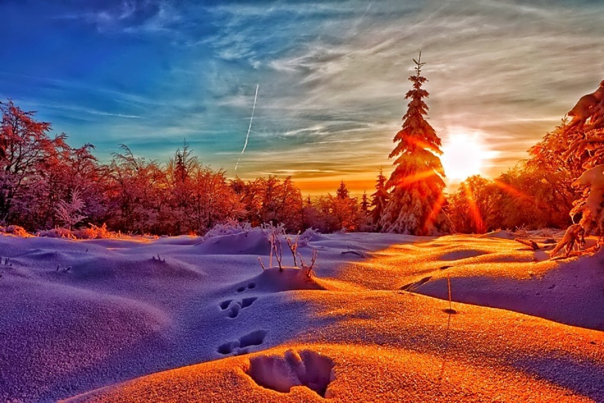 Касаюсь красоты. Зимнего заката. Разлитый золотом, на снежном серебре. В жемчужном блеске. Белым перекатом. Всё торжество природы. В морозном декабре. Застывшее мгновение. Остановился. Твой дивный несказанный свет. Покой над миром воцарился. Гармоний нежных, таинственный дуэт.