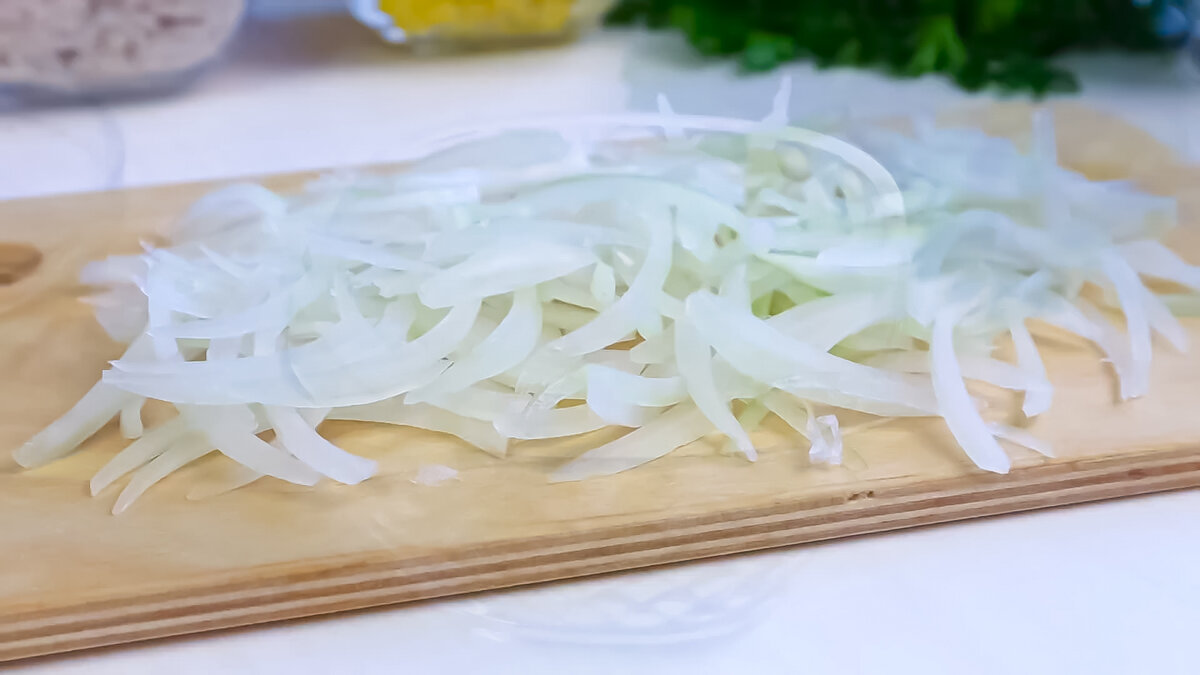 Всем привет! Меня зовут Елена и я рада Вас приветствовать на своём канале. Сегодня я хочу предложить приготовить Очень вкусный праздничный салат " Осенний Лес". Салат с курицей, грибами и маринованным луком. Готовим салат: Нарезаем лук 1 шт. тонкими перьями, добавляем сахар 1 ч.л., соль 1 ч.л., уксус 3 ст.л., вода 80 мл и оставляем мариноваться хотя бы 30 минут. К двум яйцам добавляем щепотку соли, взбалтываем и обжариваем 2 блинчика. Отварное куриное филе 1 шт. разбираем на волокна, выкладываем на блюдо, перчим и сеточка из майонеза. Далее идут жаренные шампиньоны с добавлением соли и перца 300-400г. и сразу выкладываем отварную, натёртую на крупной тёрке морковку и сеточка из майонеза. Далее выкладываем солёные огурцы 2-3 шт. нарезанные кубиками сверху наш маринованный лук. Майонез. Яичные блинчики сворачиваем в рулет, мелко нарезаем и выкладываем. Сверху посыпаем консервированной кукурузой 100г. и майонез. Украшаем зеленью. Наш салат готов. Желаю Вам приятного аппетита и отличного