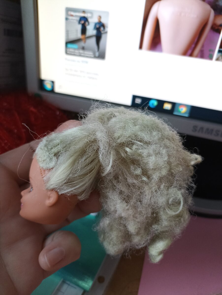 В перерывах на вахте с Детишкой (ветрянка, вся группа сада на карантине), начала и закончила маленький заказ. Требовалось восстановить вот это (фото хозяйки) И если у одной дуньки волосы просто помыла, прочесала и восстановила, то у второй в трёх местах была нарушена прошивка. Смысла расчёсывать не увидела, всё равно с нарушенной строчкой ещё половина волос при прочёсе расползется. Было решено перепрошить. Цвет и длину волос выбрали вместе с хозяйкой. Сегодня с утра села за работу. К вечеру закончила. Шила узелковым способом. Узлы толстые, крепкие. Моя медитация 😁