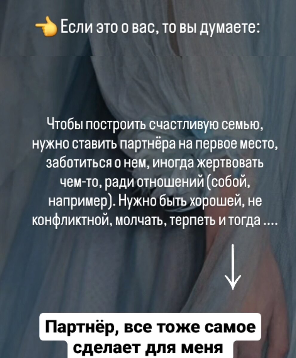 Удобная? Непокорная? Настоящая? Каких любят больше, почему, и в чем может быть подвох? Я бы разделила способы строить отношения на 3 вида: 1. Я удобная, хорошая, заслуживаю любовь 🙏🤍 2. Я самостоятельная, все сама, с мнением мужчины не считаюсь, делаю что хочу, он терпит. 3. Я настоящая, живая - живу из СЕБЯ, следую своим потребностям и желаниям, при этом я способна учитывать другого (мужчину, партнера). Подвох в том, что очень легко попасть в ловушку, в иллюзию, что пункт 2 это то, что нужно для здоровых отношений. Ведь внешне, их практически не возможно отличить. Но по внутреннему состоянию, это очень разные вещи. Безусловно, на женщину из пункта 2 залипают мужчины - но какие? Догадываетесь? Итак поехали, разбираться. Если вы удобная и не конфликтная в отношениях, то вероятно вы думаете, что если быть хорошей, ставить интересы мужчины, на первое место, то мужчина, будет делать для вас тоже самое в ответ. Но в реальности, так не происходит. Вы стараетесь ещё сильн
