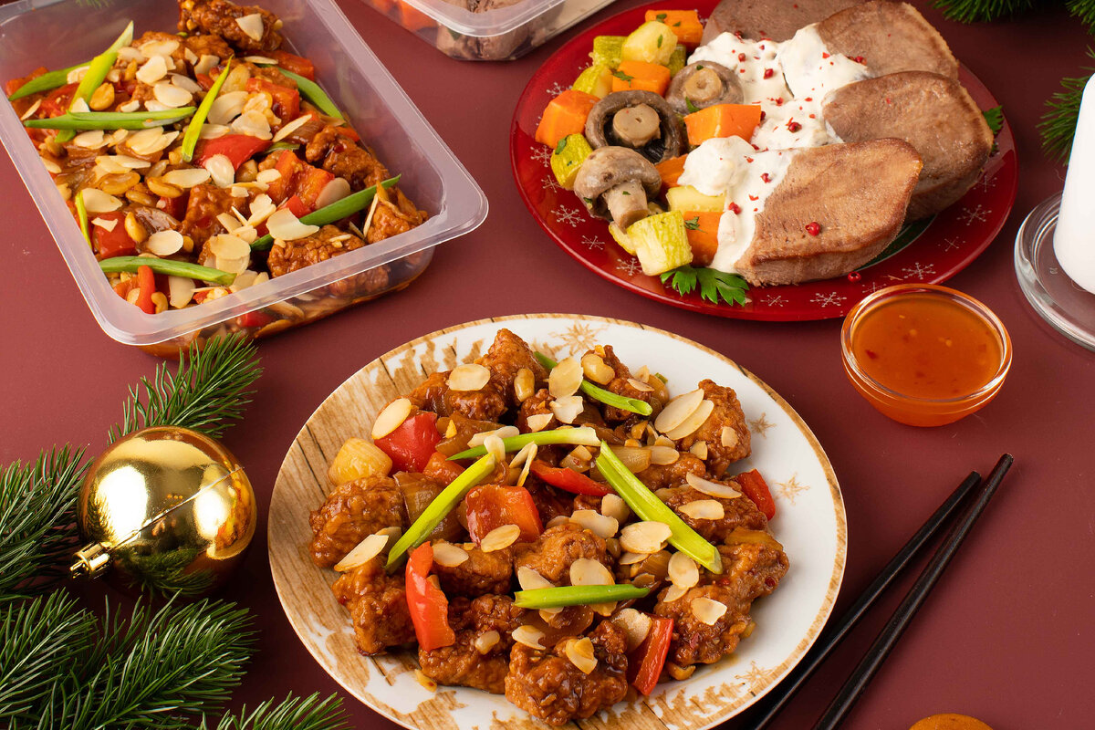 Торговая сеть уже в четвертый раз подряд запускает тематическую линейку готовой еды, приуроченную к Новому Году. Блюда для праздничного стола будут готовиться на собственном высокотехнологичном производстве в Московской области и продаваться под брендом «Шеф Перекресток». В ассортименте представлено 140 вариантов готовых и почти готовых блюд, которые помогут накрыть новогодний стол или дадут почувствовать вкус праздника уже сейчас. Предлагаются готовые салаты в праздничном исполнении, закуски, мясо и другие позиции для новогоднего застолья. Например, в меню представлены оливье с пряной уткой, картофельный гратен с семгой в соусе «Бешамель», свинина в устричном соусе с миндалём, куриный и мясной студни. Блюда новогодней линейки оформлены в тематическом дизайне и представлены как в стандартном, так и увеличенном объеме. Для праздничного ужина закуски и салаты достаточно просто переложить в соответствующую посуду, а горячее – отправить в духовку на несколько минут. Продукцию можно приобре