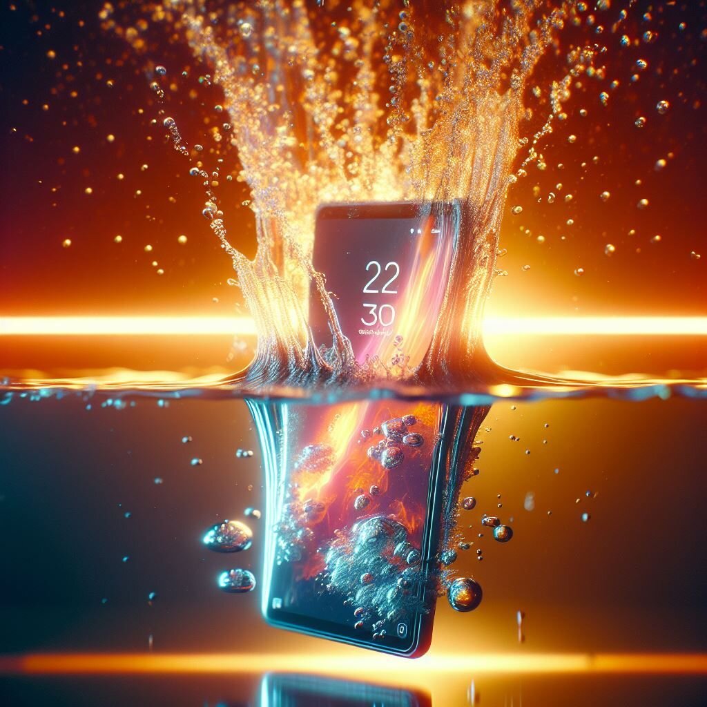 Вводим подсказку - High-speed footage of a phone falling into the water, Backlighting, neon background, uhd image, close-up