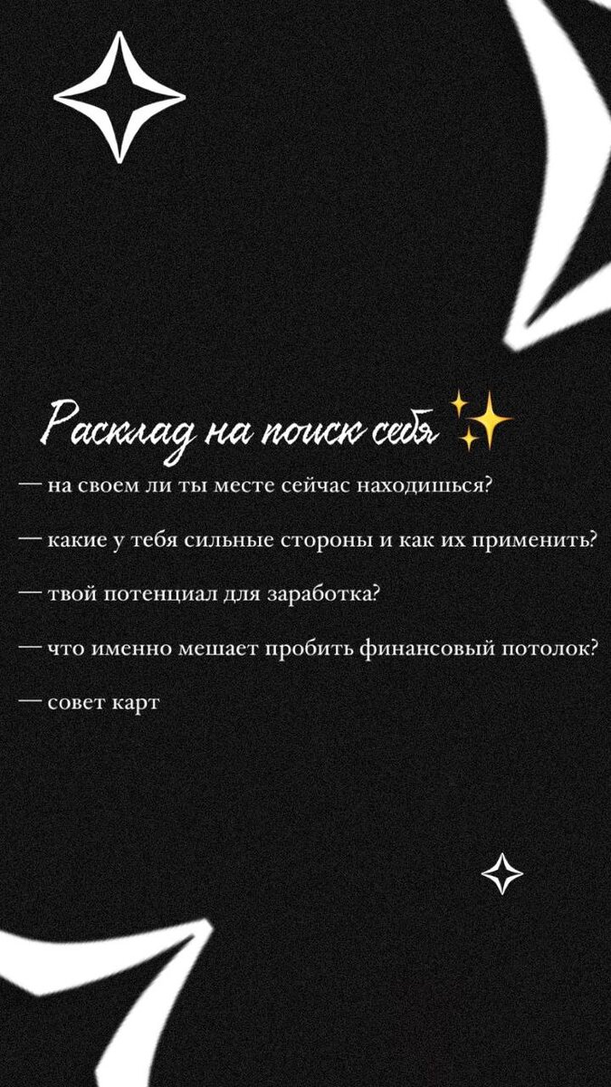 Это примерные макеты, по которым я могу сделать вам расклад на картах Таро✨ Вопросы в макетах могут меняться в индивидуальном порядке и запросе. Также у меня можно заказать ситуативный расклад и составить свой ряд волнующих вопросов🙏 Пишите, не стесняйтесь, помогу разобраться в любой жизненной ситуации. Все конфиденциально 🤫