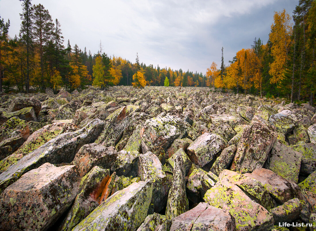 Одна из самых известных каменных рек находится в Челябинской области России, на горе Таганай. Ее длина составляет около 6 километров, а ширина варьируется от 200 до 700 метров. Глубина слоя камней достигает целых 6 метров. Валуны, из которых состоит река, весят до 10 тонн каждый и состоят из кварцита и авантюрина.