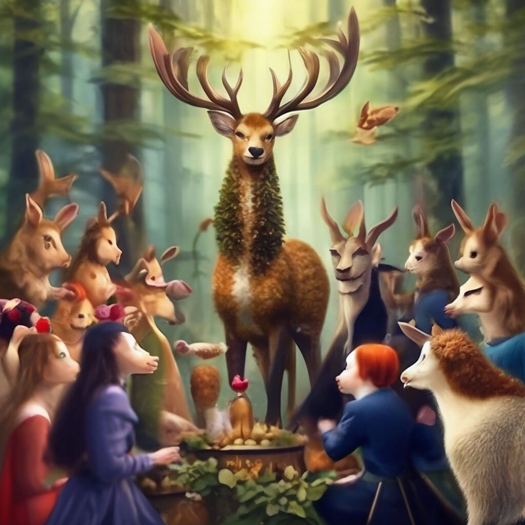 Жили-были в дремучем лесу звери разные. Была у них своя маленькая деревня, где каждый зверек жил по-своему. И вот однажды, когда все звери собрались на совет, решили они, что пора им развлечься и устроить настоящий конкурс красоты! Первым на сцену вышел ленивый лось. Он весь в шерсти, как медведь, и ходит, словно попугай. Все звери смеялись и кричали: "Лось, лось, ты самый смешной!" Потом была очередь удава. Он показал свою гибкость и начал крутиться, словно вертолет. Все звери были в восторге и кричали: "Удав, удав, ты самый гибкий!" Затем вышел на сцену петух. Он развернул свои яркие перья и запел так громко, что все звери закрыли уши. Петух кокетливо крутил хвостом и кричал: "Петух, петух, я самый красивый!" Но тут на сцену вышел лягушонок. Он был маленький, зеленый и очень смешной. Лягушонок начал прыгать вокруг сцены, делая разные трюки. Все звери смеялись и кричали: "Лягушонок, лягушонок, ты самый смешной!" И тогда старый мудрый заяц подошел к микрофону и сказал: "Друзья,