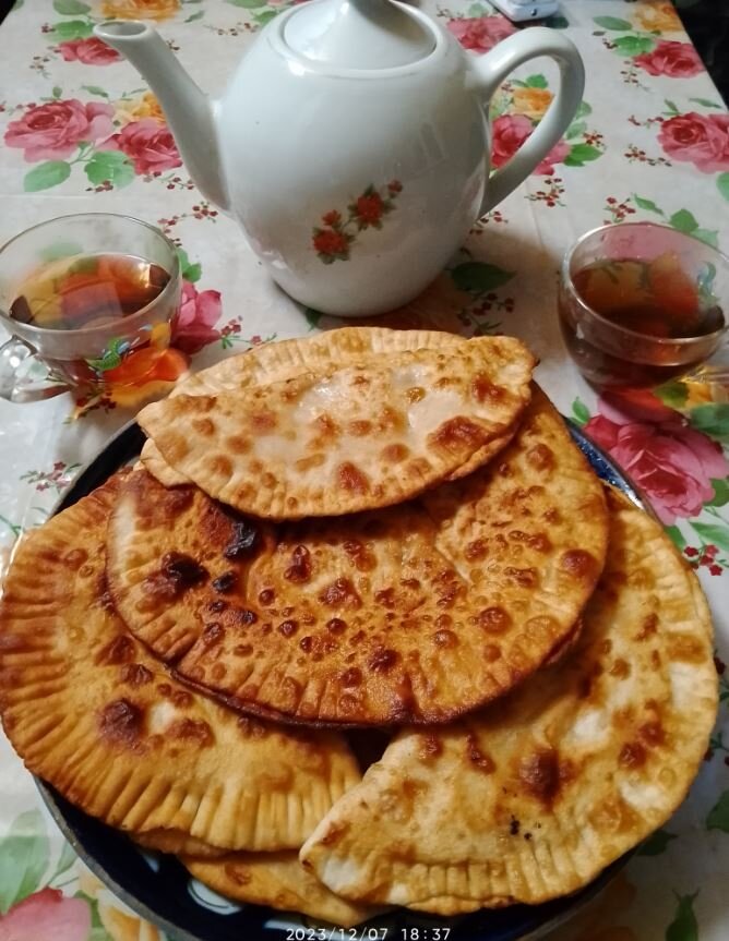 Чебуреки -не только загляденье, но и по всей видимости - объедение😋😋😋))) Рецепт теста можно?🤗 Можно. Сегодня попробовала новый рецепт теста на пиве. Вычитала в интернете. Проверено - действительно получается тесто с пузырьками. Купила самого дешевого пива, накрутила фарша с двух цыплячьих грудок, добавила немного сала, ну там лук-соль-перец-чеснок по рецепту. Старая добрая мясорубка крутит любое мясо на раз. Лет ей уже много, больше двадцати пожалуй. Досталась нам по наследству, родственники приобрели себе более крутую, навороченную. Она давным давно уже приказала долго жить, а наша как ни в чём не бывало работает. Это так, к слову о том, что не всё то плохо, что старо и не современно) Пива нужен всего стакан, так что оставшееся завтра пойдёт на другой рецепт. На итальянские печенюшки. Пробовать буду впервые. Получившееся освещу. Тесто раскатывается очень тонко и не рвётся. И это тесто оказалось делать быстрее и проще, чем предыдущее тесто заварное, хотя и оно не представляет ничег