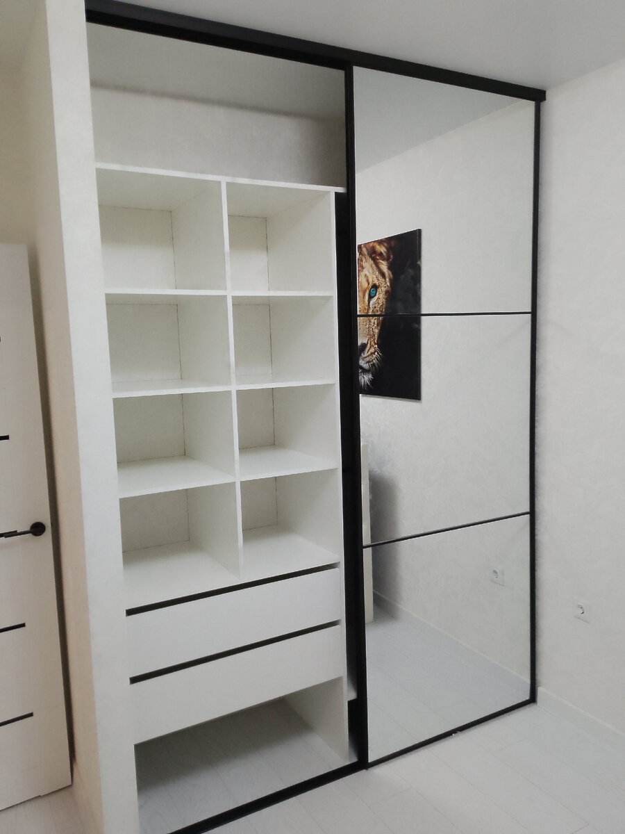 Шкаф купе с профилем modus черный. Зеркала. Белый ДСП byspan. Полки и выдвижные ящики скрытого монтажа unihoper. #мебелькраснодао, #шкафыкупе, #изготовлениеназаказмебели Подпишись!!!!
