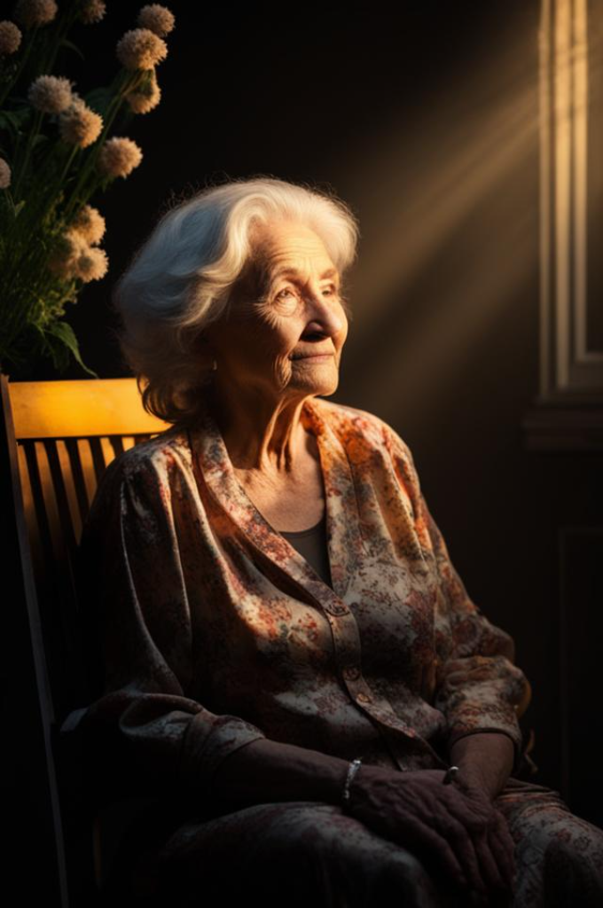Мы подошли к палисаднику, там на скамейке сидела старушка. Она нам улыбнулась так, как будто только нас и ждала.
