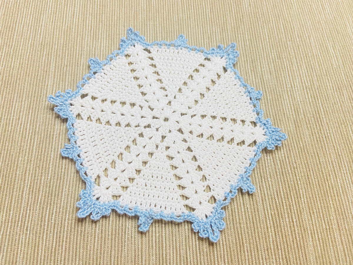 Готовая вязаная подставка в виде снежинки.