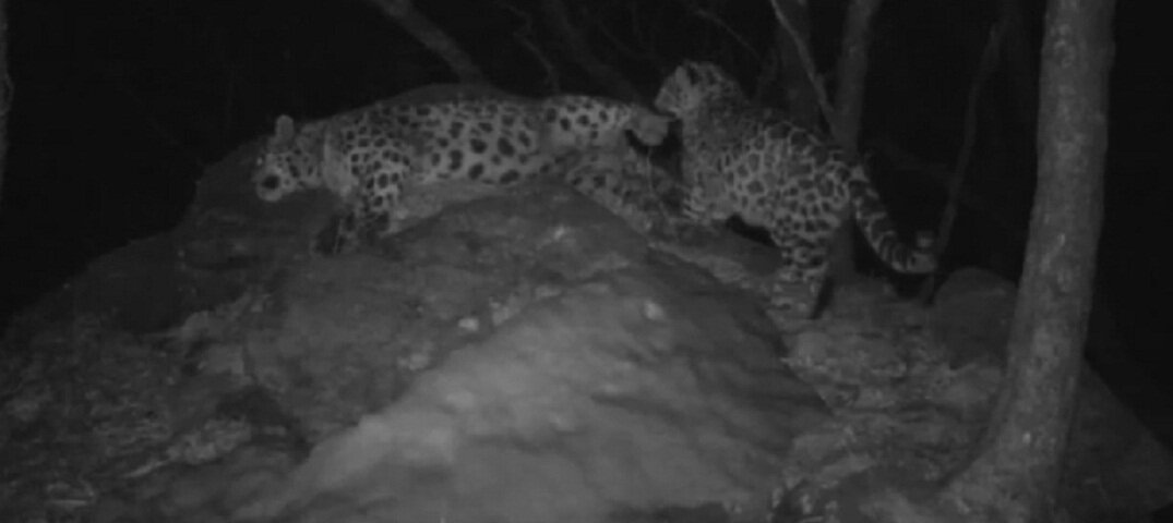 В Приморье в объектив фотоловушки, установленной в национальном парке «Земля леопарда», попало семейство леопардов. Сотрудники национального парка опознали на кадрах маму леопарда и ее детеныша в возрасте 8-10 месяцев.