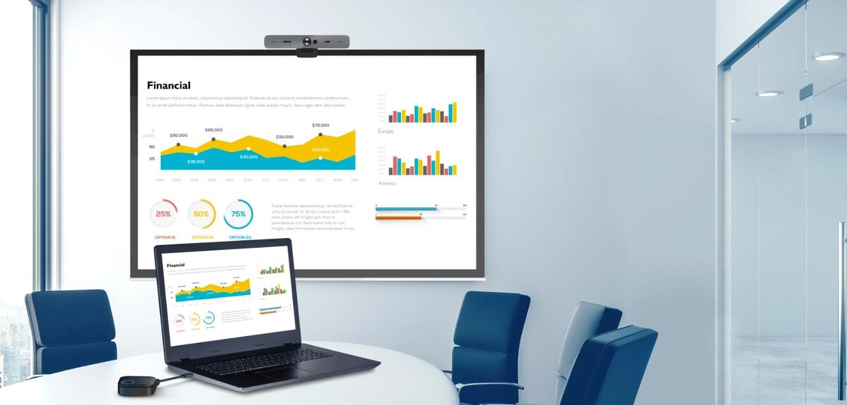 Беспроводная презентационная система служит, в первую очередь, для быстрого и легкого вывода изображения с персонального устройства на общий экран. В этом случае участники встречи могут сразу же приступить к обсуждению важных вопросов, не теряя времени на подключение и настройку оборудования в переговорной комнате. А как известно, время - деньги.