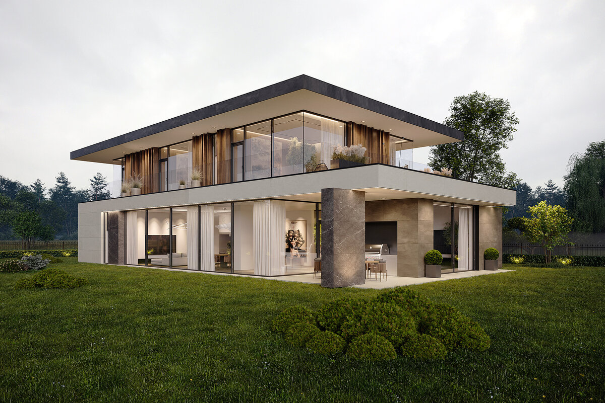 Это двухэтажный коттедж в современном стиле с гаражом на два автомобиля. Планировка и расположение комнат созданы для комфортного проживания семьи с детьми. В отделке фасада использован планкен и керамогранит — черный, серый, белый и под мрамор. Панорамное остекление позволяет максимально использовать естественное освещение, пропуская больше света в дом. Общая площадь дома — 415 кв. м. На первом этаже расположены кухня, гостиная-столовая, кабинет, гардеробная, санузел, технические помещения. На втором этаже — 3 спальни, 3 санузла и 3 гардеробных. С другими нашими проектами вы можете ознакомиться по хэштегу: #типовые_проекты_unistroy. У вас появились вопросы? Задать их можно в комментариях к посту. #стройка #архитектурныестили #проектдома #загороднаяжизнь #стройкадома #строительстводомовподключмосква #строительствоподключмосква #строительнаякомпаниямосква #подмосковье
