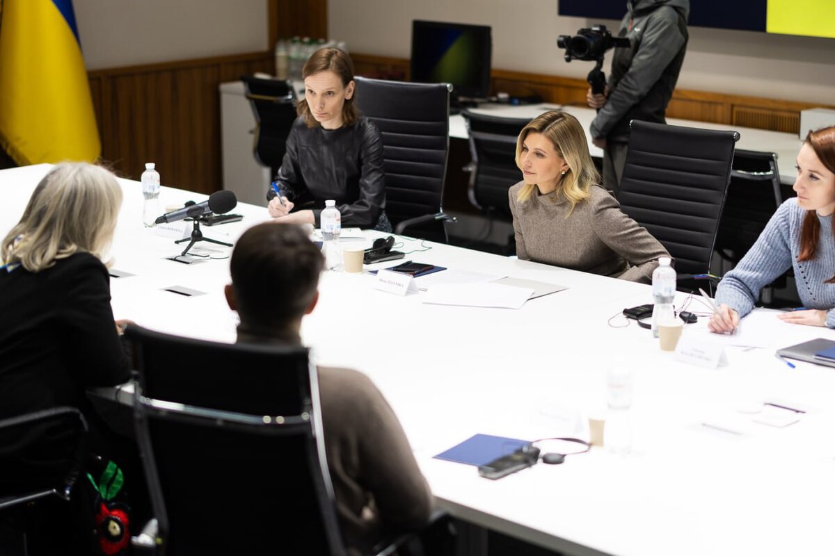 Журналисты отметили, что Зеленская выбрала костюм серо-бежевого цвета, состоящий из юбки и кофточки с необычным воротничком. По мнению представителей прессы, таким образом первая леди Украины пыталась показать, как важна ей тема разговора с баронессой - сексуальное насилие женщин.