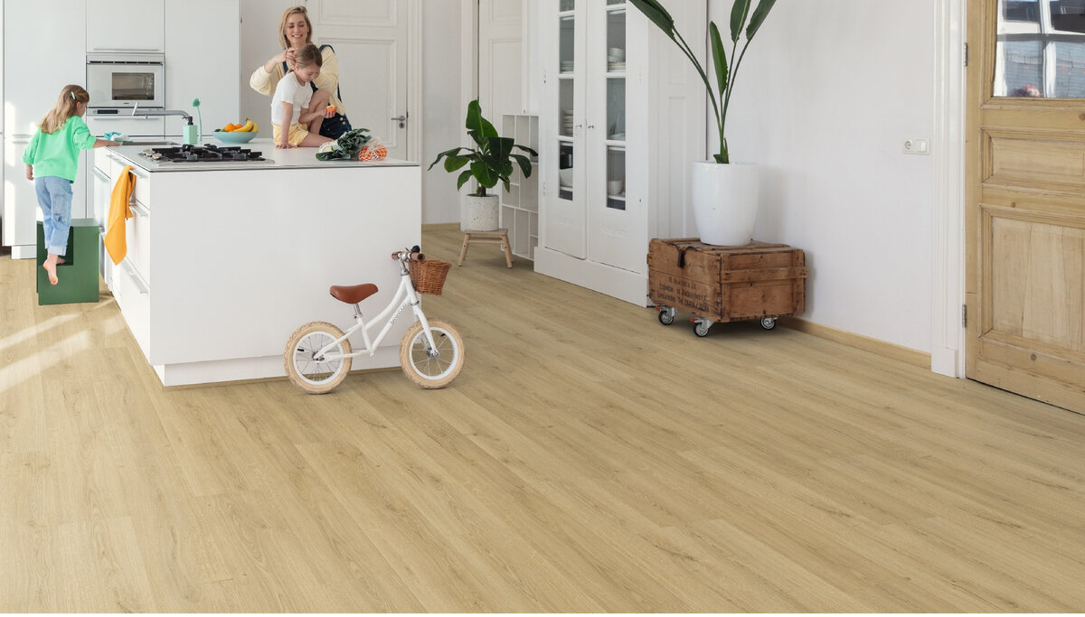 Защитный слой — это верхний слой ламината, который отвечает за защиту ламината от царапин. Бумага, пропитанная меламином, с добавлением корунда. Корунд – это второй по прочности минерал после алмаза. Обычно зёрна корунда заглубляются на 100 микрон в толщу бумаги. 100 микрон – это стандартное заглубление. В процессе эксплуатации потребитель ходит по ламинату, оказывая на него воздействие. И до корунда мы дойдём только после того, как сотрутся эти 100 микрон папиросной бумаги. Quick-Step использует запатентованную систему Scratch Guard: то есть корунд заглубляется на 20-30 микрон, - намного ближе к поверхности. Это даёт суперзащиту от истирания и образования царапин. В бытовом смысле это дополнительная защита в защитном слое, означает, что ламинат имеет двойную защиту от царапин и пятен, чем ламинат стандартного производства в соответствии с общепринятыми стандартами. Разместить корунд совсем на поверхности нельзя, но расположить максимально близко к ней – можно. Это одно из Know How Qui