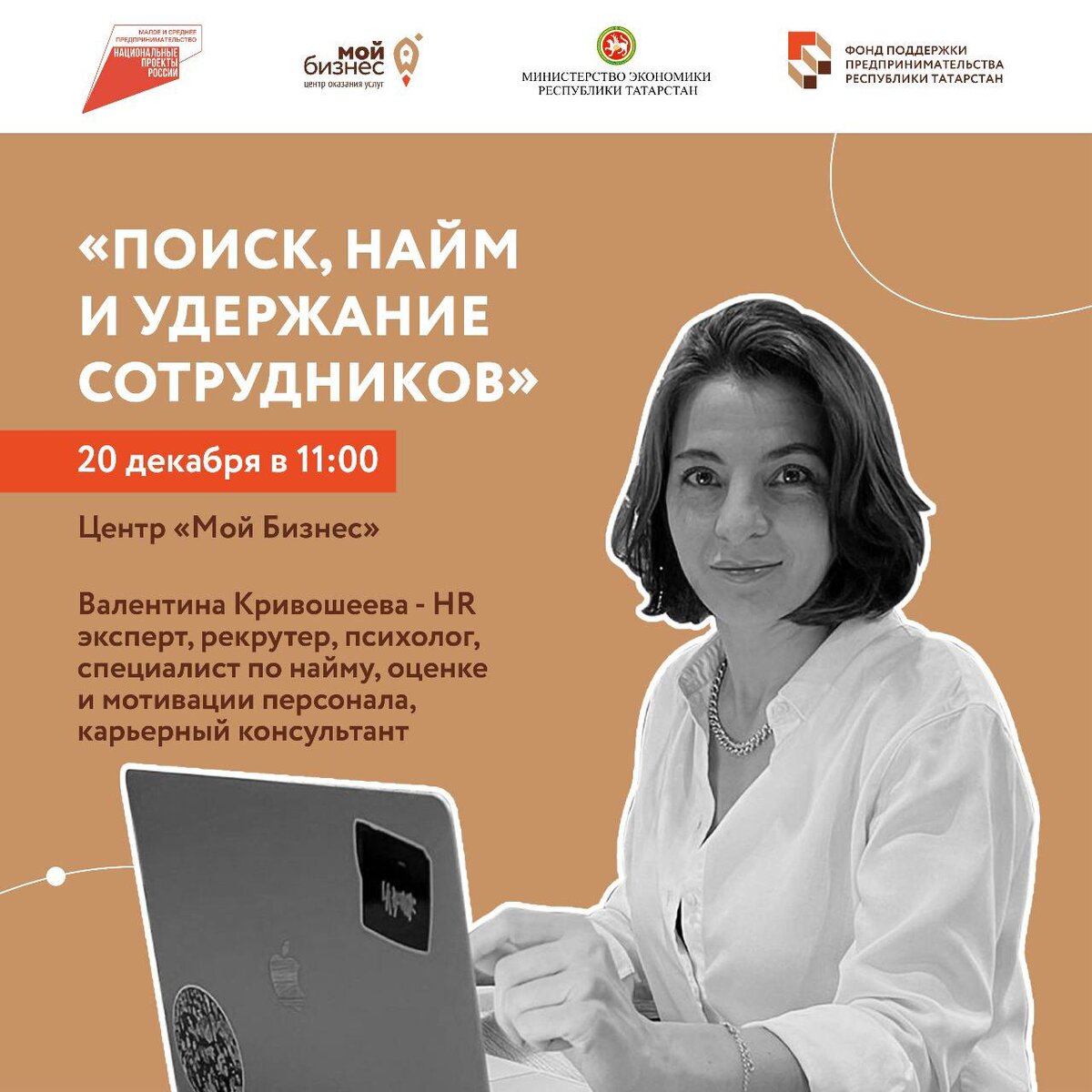 ▶️Участие бесплатное, необходима регистрация на мероприятие на Цифровой платформе МСП.РФ в разделе «Региональные меры поддержки», далее выбрать услугу «Запись на обучающие мероприятия, проводимые Центром «Мой бизнес», курс: «20.12.23 – мастер-класс «Поиск, найм и удержание сотрудников» - г. Казань, ул. Петербургская, д. 28. Очно в 11.00»
