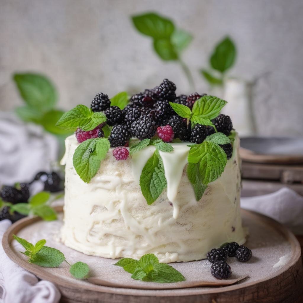 Очень легкий, воздушный торт «Молочная девочка» . Кстати, иначе его еще называют тортом для всех влюбленных. Готовится очень просто и быстро. Готовится очень просто и быстро. / Для коржей: 2 яйца 180 гр. пшеничной муки 380 гр. сгущенного молока 50 гр. сливочного масла 12 гр. разрыхлителя Щепотка соли / Крем: 300 гр. жирных сливок (от 30%) 70 гр. сахарной пудры 340 гр. творожного сыра Ежевика, листья Мяты / Приготовление: Готовим коржи. В яйца добавить сгущённое молоко и взбить венчиком .Далее добавить разрыхлитель, муку и перемешать до однородной массы. Противень(30×40) застилаем пергаментом (силиконизированным). Выливаем половину теста и равномерно распределяем. И выпекаем в разогретой до 180 градусов духовке примерно 7 минут . С готового коржа аккуратно снимаем пергамент, обрезаем неровные края и делим на 2 части. Для крема взбиваем творожный сыр с сахарной пудрой ,затем добавляем сливки и взбиваем до загустения . Собираем торт, накладывая один корж на другой и промазывая их получивш