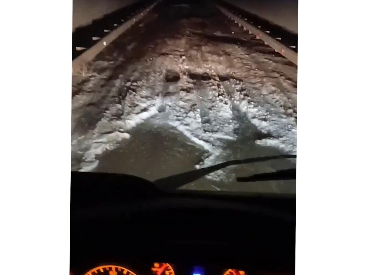 На кадрах видно, как автомобиль буксует на каждом участке дороги. Нужно очень постараться, чтобы проехать по этой разбитой проезжей части и не повредить колеса машины.