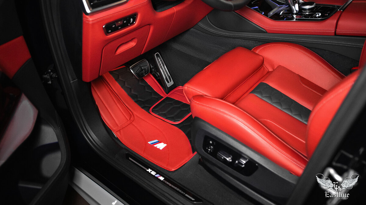 Всем доброго дня! Зима полноправно ступила практически во все регионы нашей необъятной родины, а значит, да здравствует мороз и снег! Не многие автомобилисты, конечно, разделяют эту радость, но у природы нет плохой погоды, поэтому подстраиваемся под обстоятельства, ловим дзэн и греемся по домам в ожидании чуда. На этот раз в тюнинг-ателье Eastline Garage шикарный среднеразмерный кроссовер премиум-сегмента, который моментально стал флагманом именитого немецкого автопроизводителя BMW – BMW X6 MPerformance. К ребятам тюнинг-ателье Eastline Garage за помощью обратился владелец такого шикарного автомобиля для того, чтобы мы сделали интерьер более целостным и максимально привлекательным. В интерьере преобладает натуральная автомобильная кожа красного и чёрного цветов, в связи с чем автовладелец изъявил желание видеть под ногами комплект премиальных кожаных ковров под стать интерьеру. При отрисовке будущего проекта комплекта ковров из немецкой экокожи, нашими дизайнерами была учтена не только