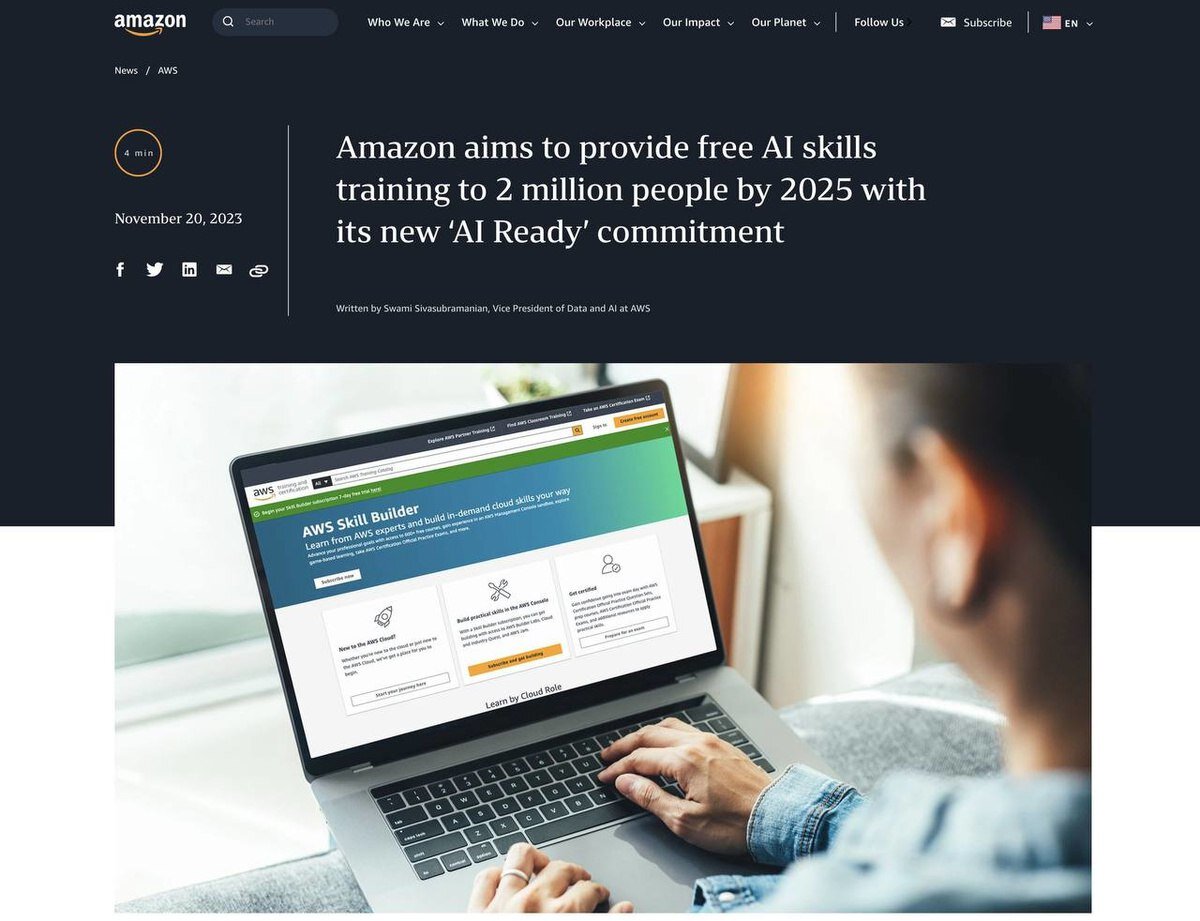 Amazon планирует обучить 2.000.000 людей навыкам работы с ИИ к 2025 году