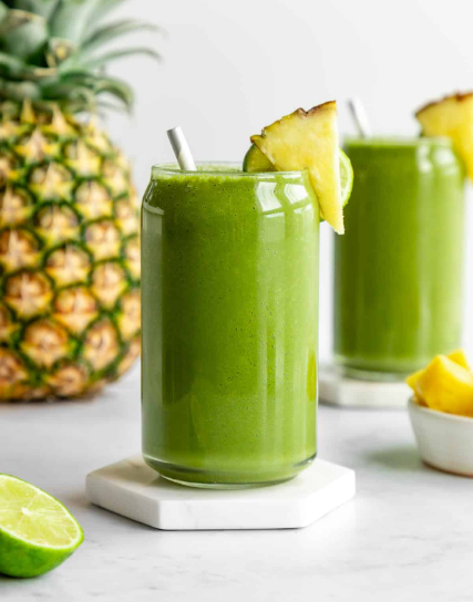 На мой взгляд, ананас - один из лучших фруктов для сочетания с зеленью. Поскольку этот сочный фрукт обладает сладким вкусом, он легко скрывает шпинат или любую другую зелень. С добавлением ананаса вам не придется беспокоиться о том, что зеленый смузи будет по вкусу напоминать салат! Кроме того, ананас приносит бесчисленную пользу для здоровья. Он богат витамином С, марганцем, антиоксидантами, борющимися с болезнями, и полезными пищеварительными ферментами. К тому же, если вы искали смузи без банана, этот рецепт для вас! Этот тропический зеленый коктейль сделан из ананаса, шпината, кокосового молока и нескольких дополнительных добавок. Попробуйте его с семенами конопли, чтобы получить полезные жиры, кленовым сиропом, чтобы подсластить вкус, соком лайма, чтобы создать пикантный вкус, или порошком спирулины, чтобы получить дополнительные питательные вещества. Ингредиенты: Способ приготовления: 1. Добавьте ингредиенты в блендер, начиная со шпината внизу. 2. Смешайте все ингредиенты до одн