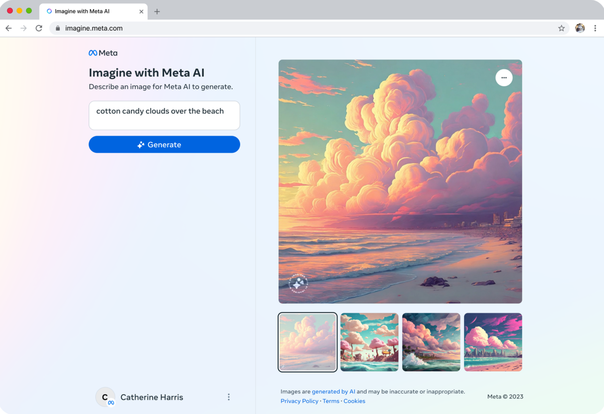 На текущий момент созданные в Imagine with Meta* изображения маркируются только видимым водяным знаком, но разработчики планируют в перспективе заменить его на невидимый, который будет генерировать ИИ.