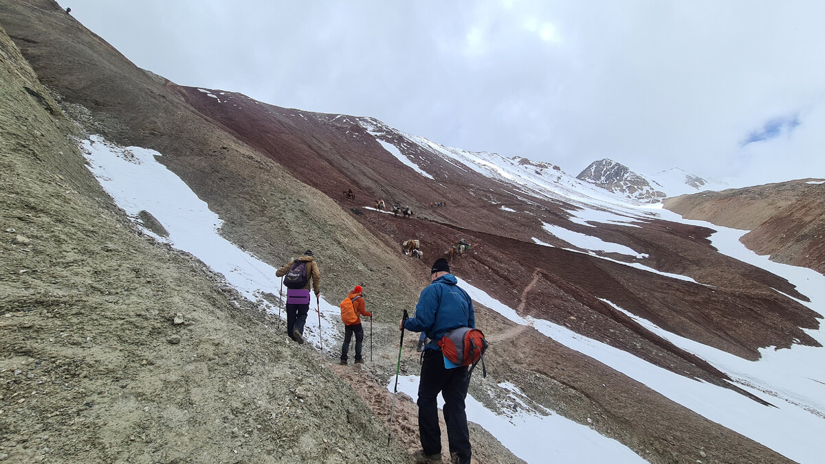 На следующий день, погрузили тяжелые рюкзаки на коней и налегке отправились в обратный путь. Погода пела, было солнечно и мы успевали делать заключительные кадры склонов и ледников. Идти было легко. Всё же аклиматизировались, да и тропа шла вниз.