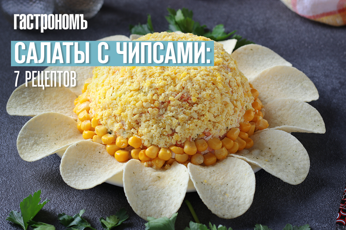 И помните — чтобы чипсы не успели размокнуть и остались хрустящими и аппетитными, добавлять их в салаты или закуски нужно только перед самой подачей на стол. В нашей подборке вы найдете 7 проверенных вкусных рецептов салатов с чипсами. Выбирайте и готовьте!