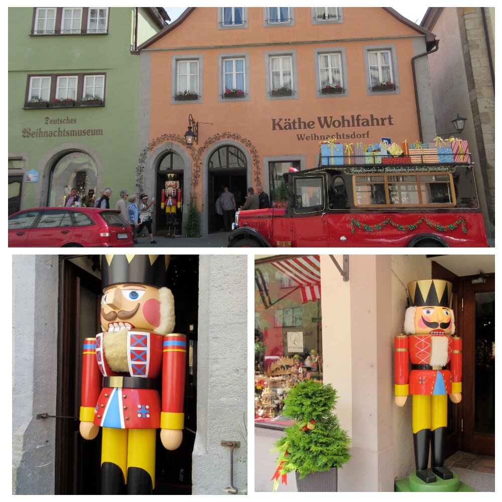 Есть в Германии очень симпатичный городок с нарядными фахверковыми домиками. Это Ротенбург-на-Таубере, и он – самый романтичный город для новогоднего путешествия. О чем я и написала в своей статье. Круглый год в этом городке можно почувствовать атмосферу Рождества и сказки, ведь в нем есть магазин рождественских товаров Кэти Вольфарт, впервые открытый в 1977 году. Сейчас в разных странах существует сеть таких магазинов. Узнать этот магазин легко, перед ним стоит красивый красный автомобиль с нарядными подарочными коробками на крыше, а у дверей большой яркий Щелкунчик. В магазине много толпящихся покупателей, и нельзя фотографировать. Но я нарушила этот запрет и украдкой сделала несколько фотографий. В магазине небольшой полумрак, лишь огоньки освещают, и очень много всего. Тут и красивые елки, за которыми спрятался Санта, и Щелкунчик. В домиках «живут» мишки Тедди и разные зверушки. Да и керамические домики, карусельки, щелкунчики в большом выборе. А внимательные продавщицы в нацио