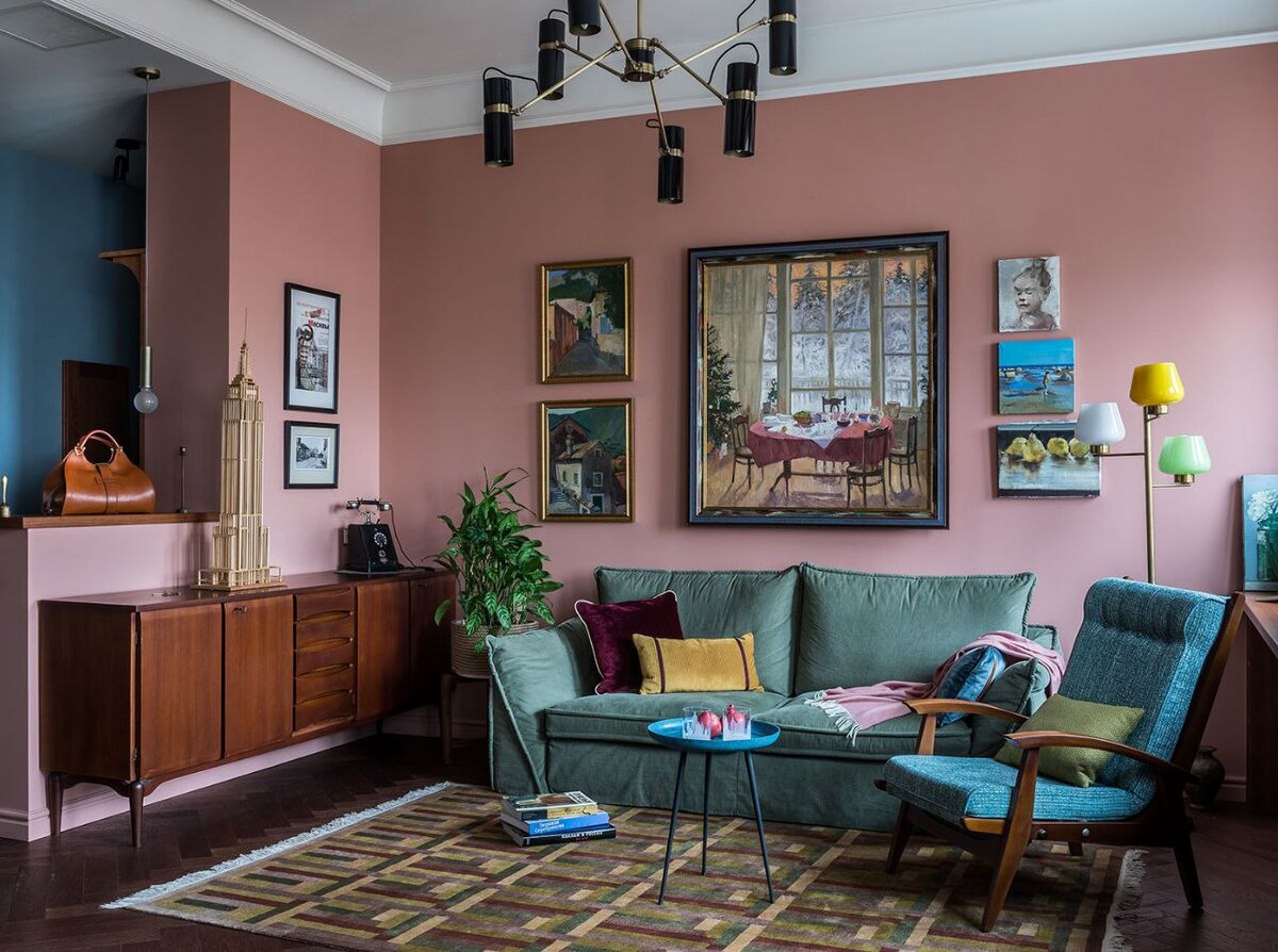 Стильный и запоминающийся дизайн. Очень уютно. Люблю высокие потолки. Они создают ощущение объёма, простора и воздуха. Единственный минус - это обслуживание и ремонт потолков, и мытье больших окон, но это мелочи, если бюджет позволяет. Мне очень понравилась ваша квартира. 👍 Вот розовый цвет вообще не гармонирует ни с чем, слишком тяжелый оттенок создаёт ощущение что "стены давят", особенно в сравнении со спальней. Скорее, интерьер в стиле 60-70х годов, причем советского союза. У кого-то он вызовет ностальгию, кто-то сочтет "бабушкиным". Чем-то напоминает квартирку глав героини из хода королевы только в современной интерпретации. Высокие потолки хороши для свежести воздуха и для освещения за счёт огромных окон. Раньше ведь не было вентиляционных установок и электричества, вот богачи и обеспечивали себе элементарный комфорт, как могли. Модная эклектика с ретро-вайбом, местами оригинальность ближе к оригинальничанью. Идея с зонированием гардеробной не банальная, что-то в этом есть. А