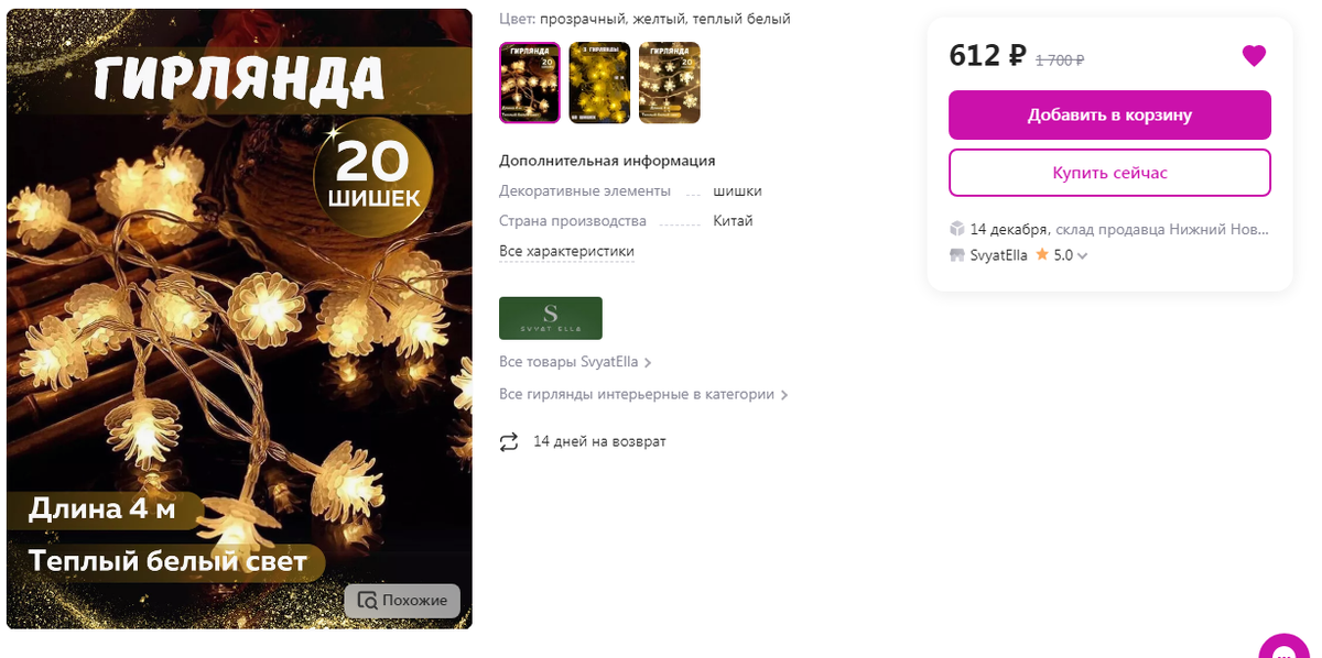 До Нового Года осталось 23 дня. Выбираем новогоднюю гирлянду с Wildberries и Ozon