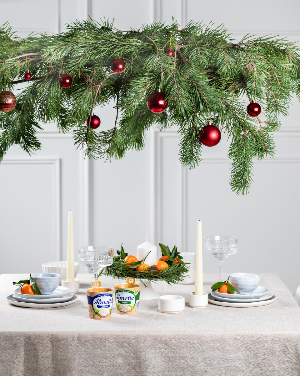 Как превратить обычный ужин в самое запоминающееся событие года? Мы в Almette собрали восхитительные идеи сервировки и украшения новогоднего стола. Рассказываем! 1) Скатерть должна гармонировать с сервизом. Есть универсальный совет: к однотонной посуде выбирайте пестрый текстиль с тематическим принтом, к тарелкам с узором — нейтральную скатерть контрастного цвета, фактура которой вполне может быть необычной. 2) Выбирайте однотонные свечи и гирлянды. Новый год немыслим без мерцающих огоньков! Для украшения стола подходят гирлянды на батарейках с мягким светом без мигания и одного тона. Трепетание живого огня добавит романтики и камерности. Для торжественности поставьте свечи в канделябры или стеклянные подсвечники. 3) Элементы декора центральной композиции не должны мешать непринужденному общению и затруднять доступ к блюдам. Используйте прием создания интерьерной виньетки. В ней должно быть что-то вертикальное, например ваза с еловыми ветками. Горизонтальное — красивый поднос. И темат