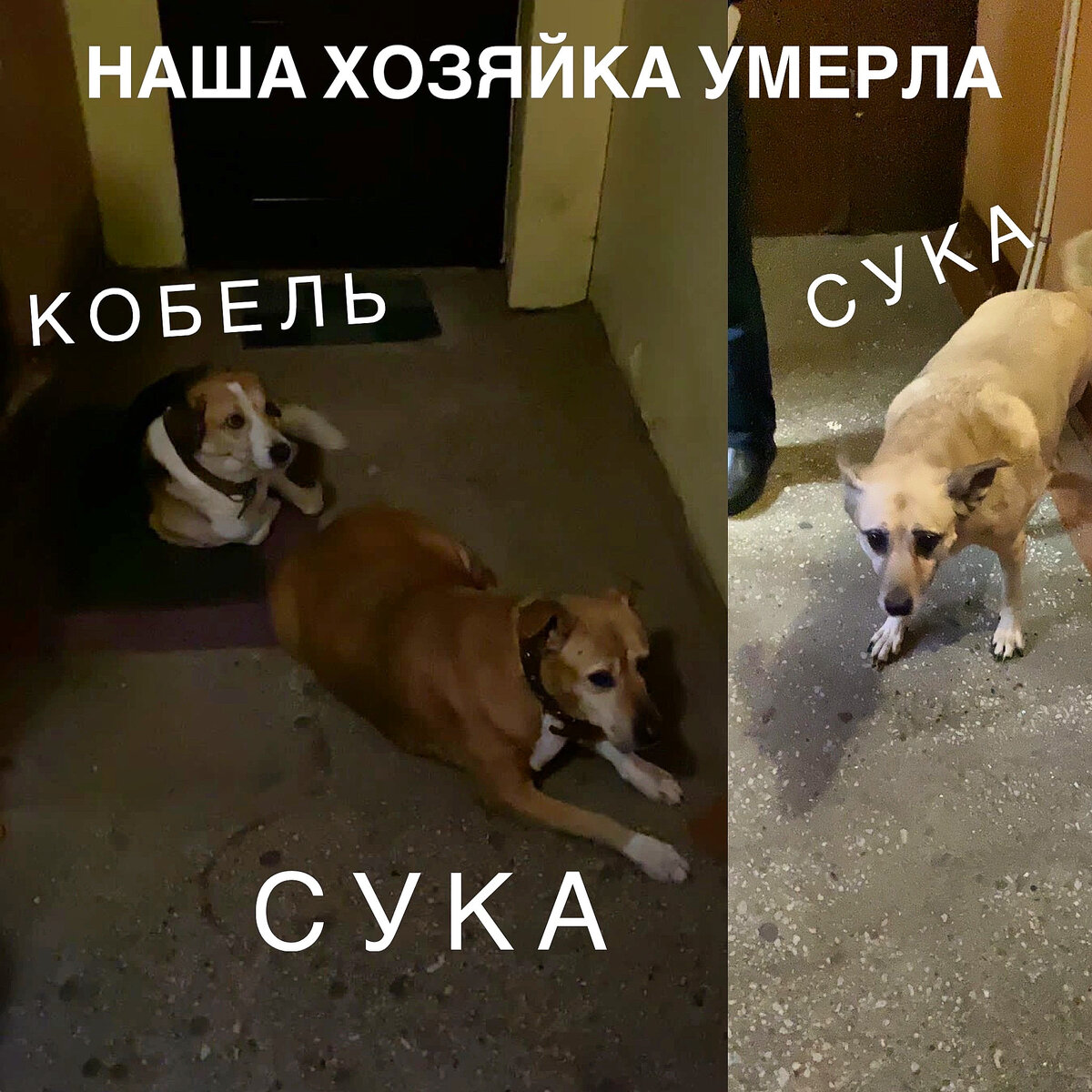 История про боль и страх животных. Про предательство родственников. Про мерзкую ложь.. Самое страшное в этом, что подобные истории случаются все чаще и чаще… Прошлая суббота, вечер. В это время, в основном, люди отдыхают. Мы не исключение. Но по роду деятельности мы всегда «он-лайн». Добрянская скидывает пост об осиротевших собаках, в связи со смертью пожилой хозяйки. Мы быстренько перепосты по группам кидаем, так собак выгнали в подъезд и у собак сутки, иначе их вывезут.. А собаки старые, одна с опухолью. На улице холод .. Пишу Машке «давай хоть старых девок заберём, подсадим к кобелям на новом месте #приюта_в_косме» Машка мне «а как кобель один останется? Куда его одного вывезут» Я на дне рождении в 100 км от Калининграда. Маша звонит «информатору» и говорит везти собак к нам.. А ей «мол приезжай, забирай» Актуальненько - Маша без прав и машины. Везут собак, по телефону выносят Машке мозг - дорога гавно у вас к приюту. Ой старую собаку с опухолью грызут две другие собаки (кобел