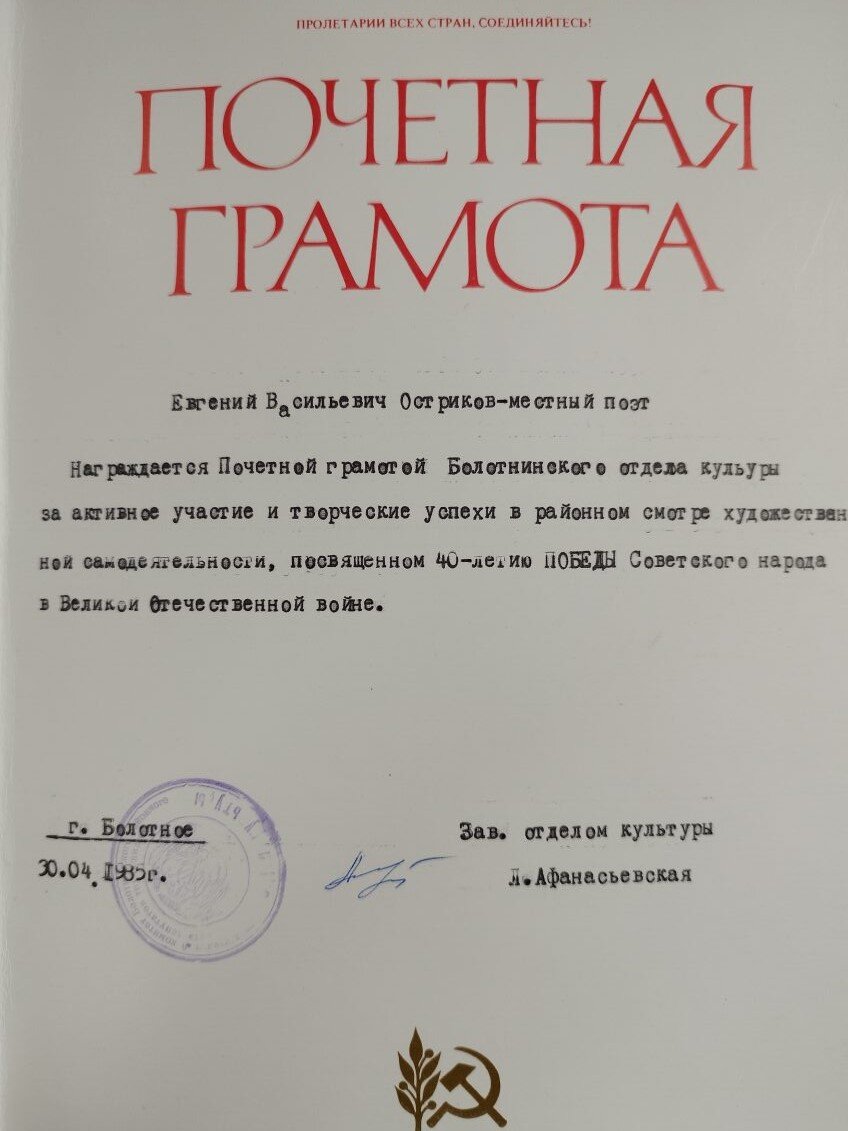 Евгений Васильевич Остриков. Певец Болотнинской земли. Ч.4.