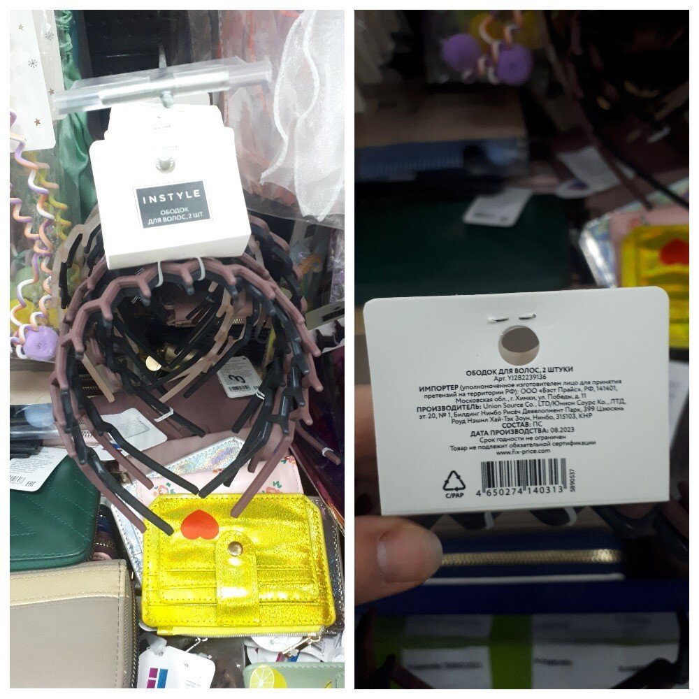 Ободок для волос стоимостью 59 рублей. Состав: АБС, ПВХ, ПЭТ. Страна изготовления Китай.