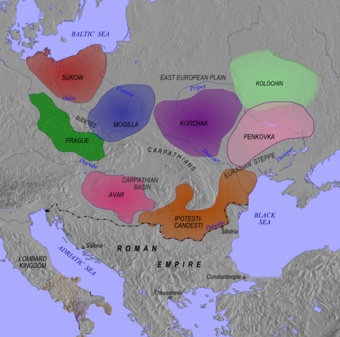 Проблема происхождения хорватов неразрывно связана с проблемой происхождения славян и славянских археологических культур. Тут не место сильно углубляться в этот спор, тем более, что мне приходилось подробно описывать историю дунайских словен и комментировать некоторые работы на тему славяногенеза. Но, нужно отметить, что я сторонник теории, согласно которой этноним «словене / славяне» распространялся из Нижнего Подунавья, а его первоначальными носителем было население, оставившее культуру Ипотешти-Кындешти-Чурел. Это население, в свою очередь, было тесно связано с носителями пражской археологической культуры (она же культура Прага-Корчак). Именно здесь, на территории древней Дакии, на тех самых землях, на которых проживали карпы в III в., во второй половине VI века сложилось первое раннегосударственное объединение славян во главе с «риксами словен» Добрятой и Мусокием, воеводами Ардагастом и Пейрегастом, которое я называю «Словенское царство».