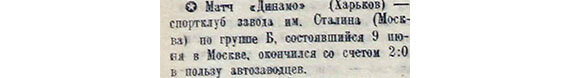 ЗиС - «Динамо» (Харьков) – 2:0 (1:0) - аннулирован