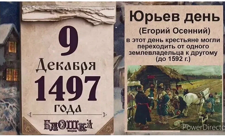 9 декабря. Юрьев день. Исторически это тот самый день, когда крепостные крестьяне могли поменять помещика, пока в 1590 году его не отменили. Отсюда и пошло выражение: «Вот тебе, бабушка, и Юрьев день» В этот период (который длился 2 недели, неделя до и после 9 декабря) было принято доделывать всю начатую работу, раздавать долги, утраивать благодарственные пиры. Очень ценно в этот день подвести итоги года, сделать практику Благодарности.