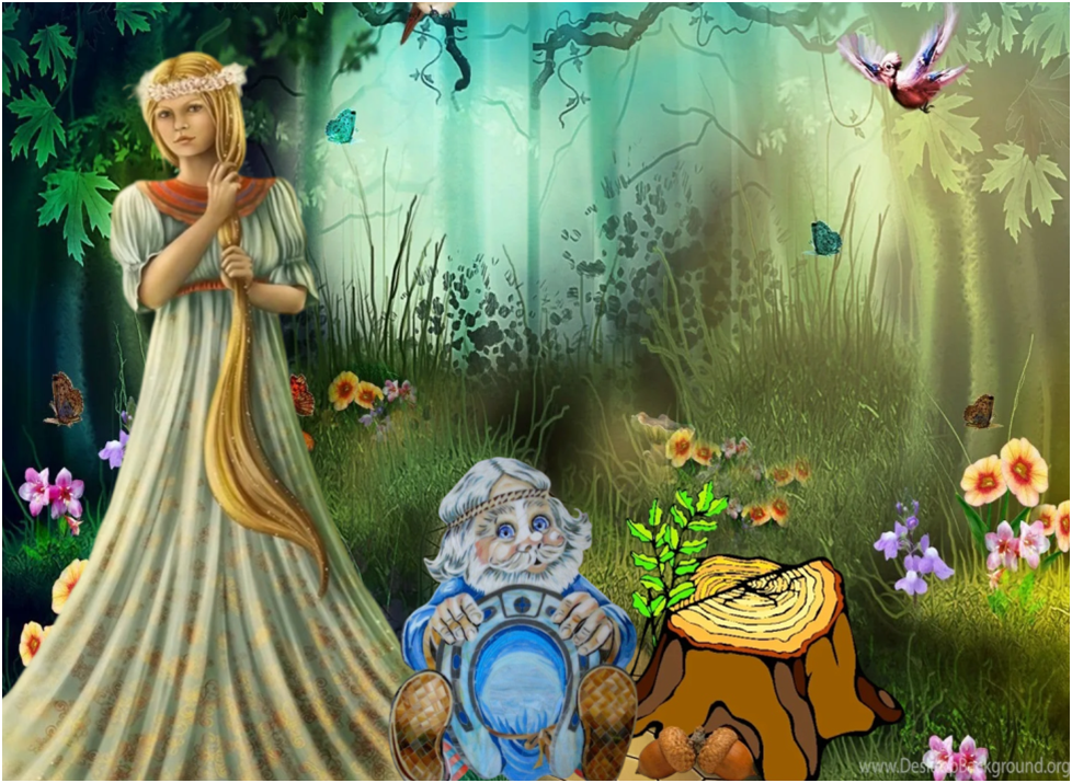 Мне показалось, что вот тут, за кустиком, кто-то прячется и зовёт меня по имени. Я зашла за кустик и как будто попала в сказку. Краски стали такими яркими, что аж глаза защипало. Я оказалась на какой-то сказочной поляне, посередине которой стояла молодая красавица с длинными вьющимися светлыми волосами, с шикарным венком из полевых цветов, или скорее, степных, в простом белом платье в пол, подпоясанном красным шнуром с кисточками на концах. У неё на руках сидели птицы и маленькие и побольше, таких я в тех местах никогда и не видела.