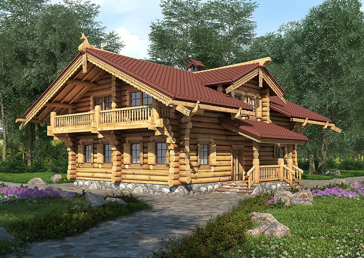 Проект Вятич - это загородный дом, гармонично сочетающий традиции русского деревянного зодчества и передовых достижений современных технологий строительства. Построенный из массивных бревен, дом стоит на каменном фундаменте. Двускатная крыша имеет широкие навесы, которые не только выполняют эстетическую функцию, но и служат прекрасной защитой от снега и дождя. Также проект содержит декоративные элементы, присущие русскому деревянному зодчеству. Например, крыльцо и просторный балкон на втором этаже дома имеют ограждения из балясин, кровля украшена коньком и ажурными резными наличниками. Что касается внутреннего пространства дома, то и здесь Вятич воплощает идею сочетания традиции и современности. На первом этаже расположена просторная общая комната, гостевая комната, кухня, санузел, технические помещения, выход на открытые террасы. На втором этаже находятся три уютные спальни, а также санузел и холл. В принципе, функциональность помещений может меняться в зависимости от пожеланий заказч