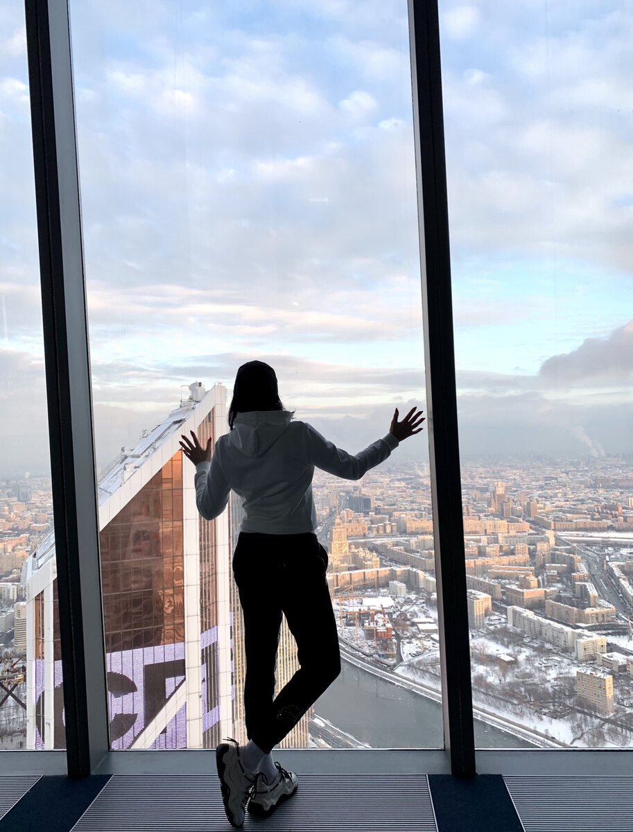 Побывать на самой высокой смотровой площадке Европы PANORAMA360 в башне «Федерация»- мечта многих. А в дополнение ко всем «плюшкам», которые там предлагаются, увидеть новогоднюю сказку - это вообще праздник какой-то! Московский театр иллюзии на высоте 327 метров показал фрагмент из своего самого новогоднего и снежного спектакля «Сказка о белом тигре». Главная героиня сказки – храбрая и добрая девочка. Она отправляется в волшебный снежный лес, полный чудес и магии. Там она встретит заколдованного белого тигра, найдет новых друзей и побывает на балу у Белой королевы. Пока одни артисты были задействованы в спектакле, другие в этот момент, общались с гостями и фотографировались с теми, кто бы увлечён либо рассматриванием видов Москвы, либо поеданием мороженого и конфет. Ими здесь угощают бесплатно и безлимитно. Как дизайнер и художник-модельер , я не могла не обратить внимание на роскошные костюмы и им ставлю наивысшую оценку. Около зеркальной стены прогуливался Дед Мороз. Его в