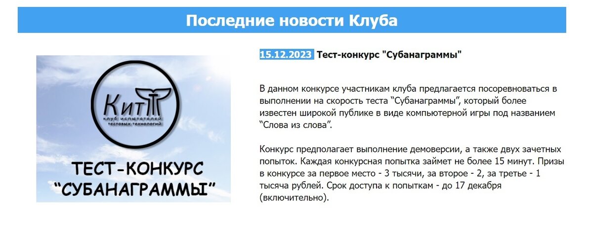 Тест-конкурс продлится до 17 декабря включительно.