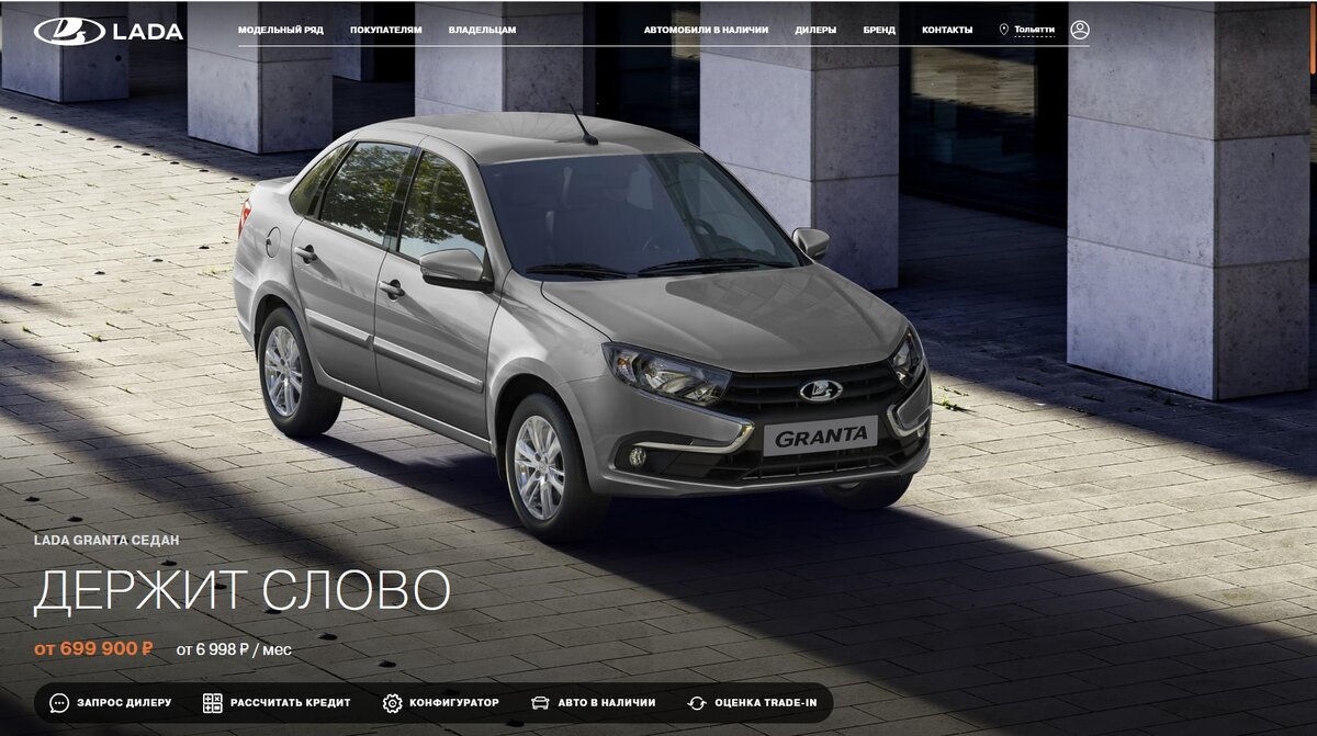 Естественно, перед новым годом многие спешат купить авто по старой цене. И вот дилеры со всем окон интернета вещают нам о скидках, спецпредложениях. Посмотрел, посмеялся. Ну думаю, для подписчиков надо позвонить узнать о такой щедрости. Но перед этим зашёл на официальный сайт ЛАДА. И вот каким лозунгом он встречает посетителей: Держит слово, ну и цену. Обратите внимание от 699 900. Само собой разумеется, что это с учётом акций, трейд -инА, кредита, "залога квартиры", поручительства всех членов семьи и предъявления паспорта на холодильник" (на всякий случай напишу - уточню, что это шутка). И так звоним дилеру, у которого несколько знакомых приобретали авто в далёком 2000 каком-то. И что мне поведал вежливый менеджер? Самая простая Гранта с кондеем в цвете не металлик обойдется вам примерно в 1 100 000 рублей. И, естественно, с доп опциями: антикором, ковриками, упорами капота и сигналкой. А что по комплектации? Снова смотрим сайт И это комплектация "Стандарт", мне же в положительный от