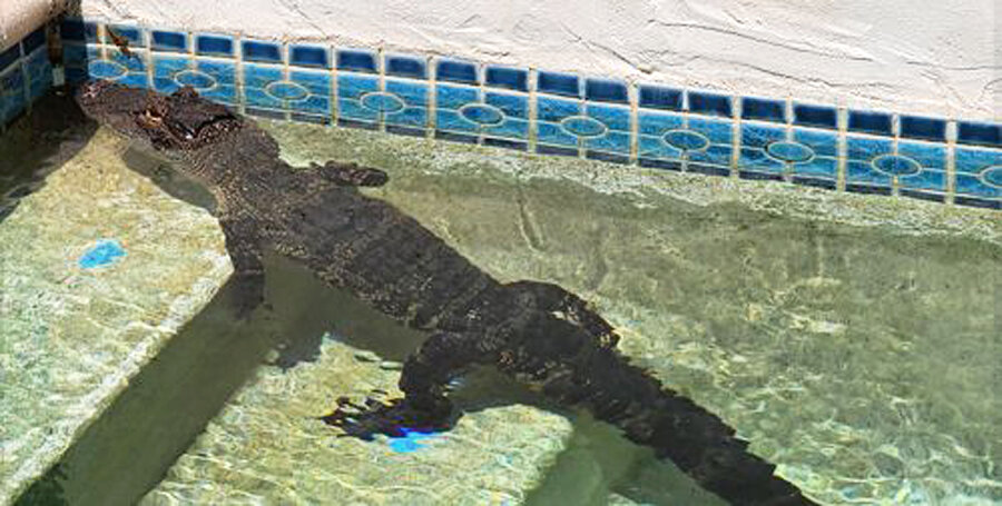 Флавия Ватсон из Пинелласа (штат Флорида, США) ведет здоровый образ жизни. В то утро она, как обычно, после разминки нырнула в свой бассейн во дворе дома. Но через несколько секунд обнаружила, что она здесь не одна: рядом с ней из воды показалась… голова крокодила. И хотя животное не проявляло агрессивности, Флавия не стала продолжать совместное купание, а с визгом и быстротой молнии выскочила из бассейна. Наряд полиции, прибывший по ее вызову, установил породу гостя — им оказался небольшой (не взрослый) аллигатор. Офицеры полиции, трое мужчин и женщина, доказали, что даже такой необычный нарушитель спокойствия им по плечу: обездвижив аллигатора и замотав пасть лентой, они сдали его сотрудникам природного заповедника.