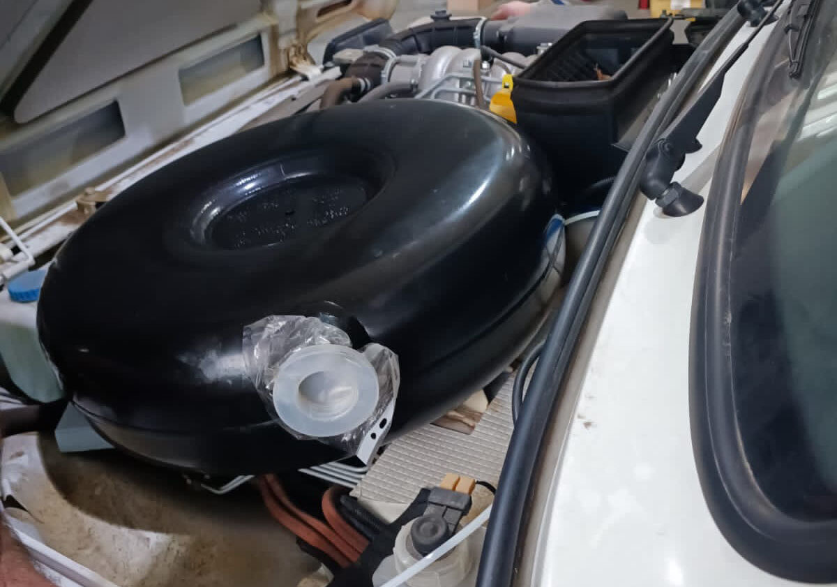 Все же решились ставить дополнительный топливный бак на место штатной запаски Нивы, но есть нюанс... Бак будет не бензиновый, чтобы не рисковать установкой большого объема расширяющегося и газообразующего топлива. Бак будет дизельный. Другой вопрос, зачем бензиновой Ниве дизель-бак. Но сначала о муках выбора. Попробовали поставить бак для газа, но по размерам он оказался слишком большой и не помещался. Ребята из коломенского Автокемпер Пром методом подбора нашли идеальный вариант - плоский топливный бак с датчиком остатка топлива, который вошел словно всегда там стоял. А теперь ответ, зачем бензиновой Ниве дизельный бак... Штатный бензиновый автономный отопитель (фен) у меня выдал глюк, вместо него установили более надежный дизельный фен, а в добавок к нему поставили вторую дизельную печку, гарантирующую тепло на Северах, куда мы собрались, ну и выступающую в виде резервной. Как закончат работы - опубликую более подробный рассказ об изменениях.