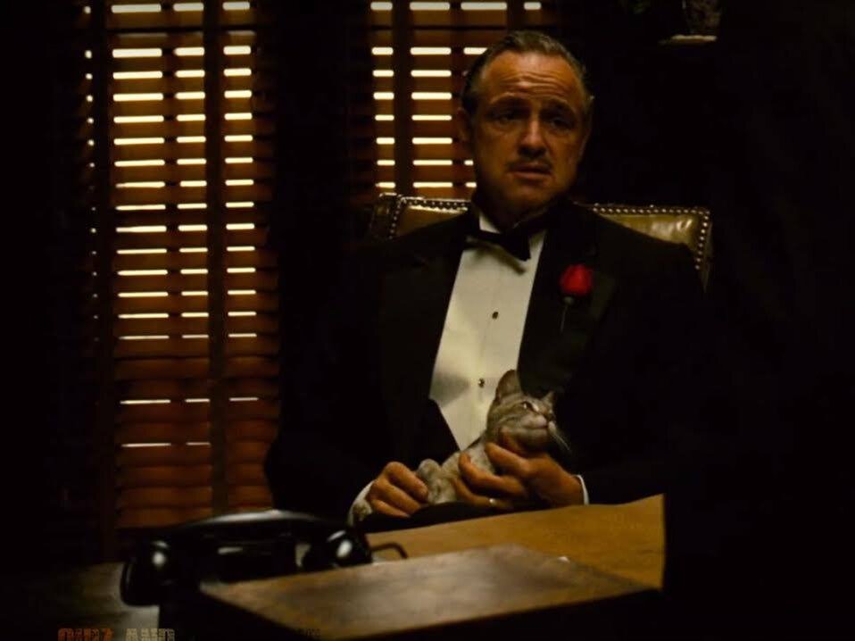 Изначально в выдающемся фильме Фрэнсиса Форда Копполы у грозного Дона Вито Корлеоне не предполагалось никаких кошек. Этот элемент, запомнившийся зрителям на долгие годы, появился в самый последний момент. Все благодаря режиссеру, увидевшему студийную кошку. На знаменитого дона Вито Корлеоне с кошкой на руках из "Крестного отца" впоследствии сделали множество пародий.